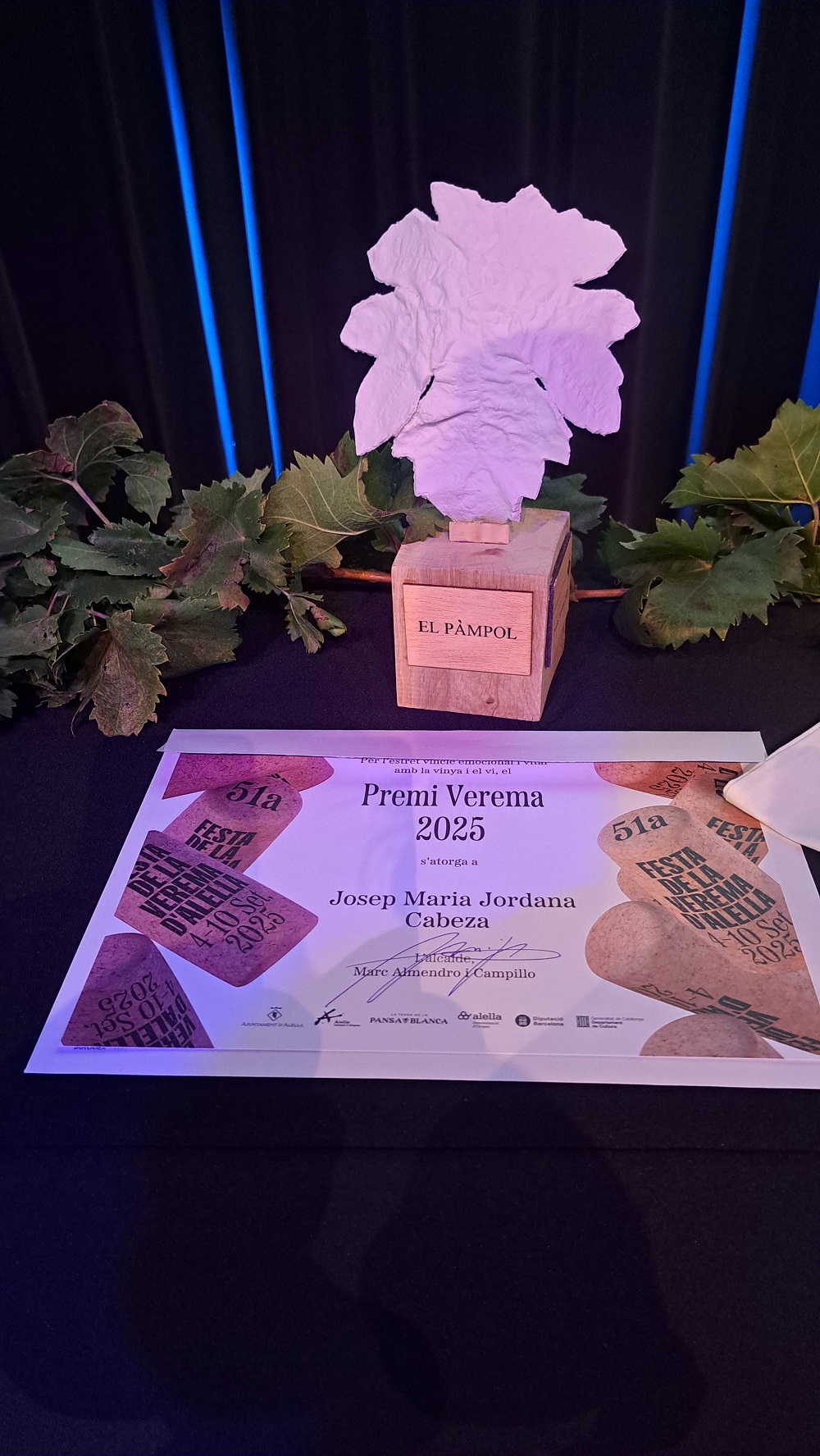 L'Espai d'Arts Escèniques va acollir diumenge 7 de setembre un dels actes més especials i emotius de la 51a de la Festa de la Verema: el lliurament dels Premis Verema. Un reconeixement que l'Ajuntament d'Alella va crear l'any 2022 per premiar i retre homenatge a alellencs i alellenques que al llarg de la seva trajectòria han tingut o tenen un vincle estret tant emocional com vital amb la terra i el sauló, els ceps, el raïm… en definitiva la vinya i el vi.