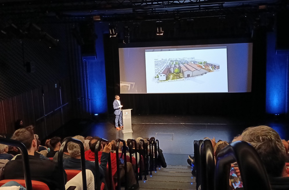 L'alcalde ha reconegut que arribar a un acord amb la propietat no ha estat fàcil, però que calia aconseguir-lo per aprofitar una ocasió única per al poble d'Alella de mantenir un edifici històric i emblemàtic com La Vinícola, situat al mig del poble, per donar serveis a la ciutadania. Després d'explicar els detalls de la proposta municipal, l'alcalde s'ha donat un torn de paraula perquè el públic assistent a la sessió, unes 200 persones, pogués aclarir dubtes o expressar les seves opinions.